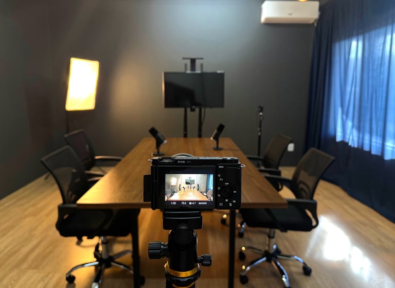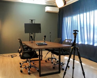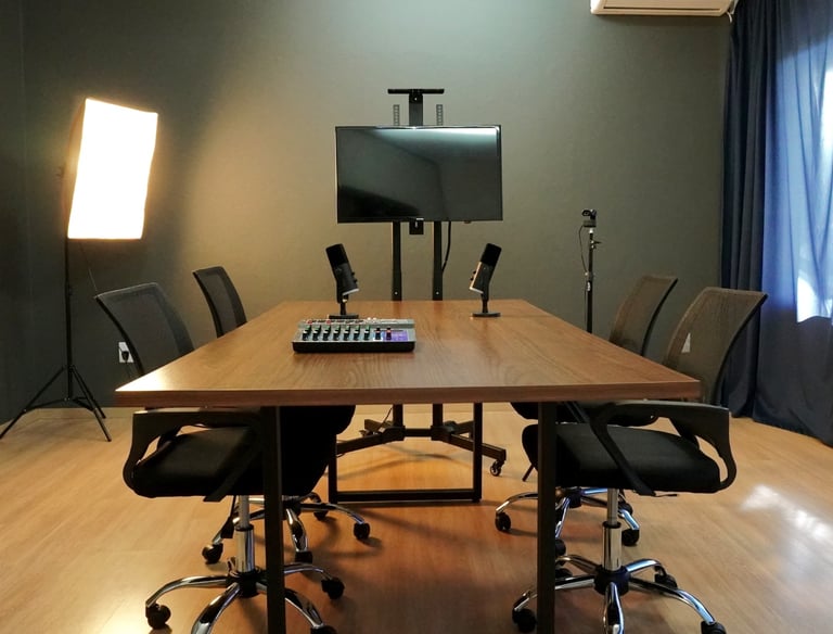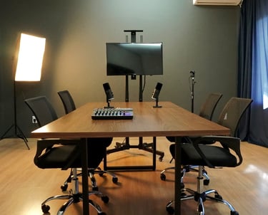 Um estúdio versátil para gravar seus conteúdos ou realizar reuniões corporativas com total privacidade e tecnologia