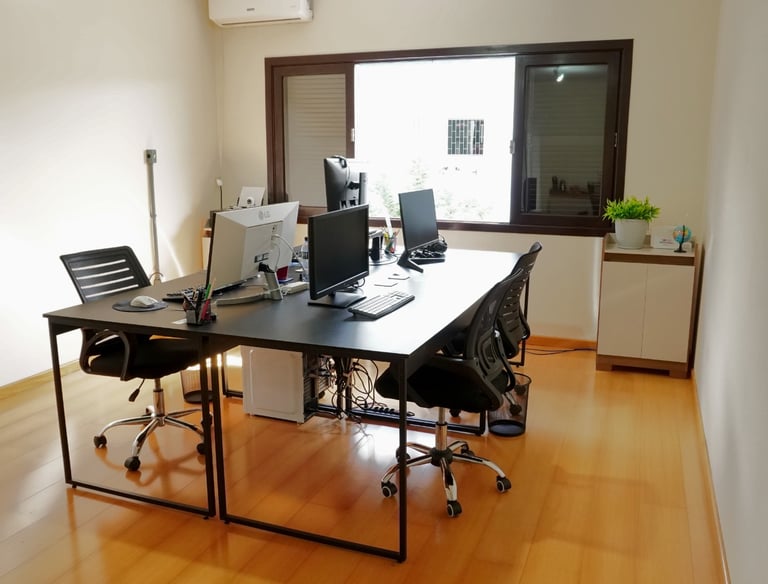 Estações de trabalho flexíveis projetadas para maximizar seu foco e facilitar seu trabalho através de mesas compartilhadas